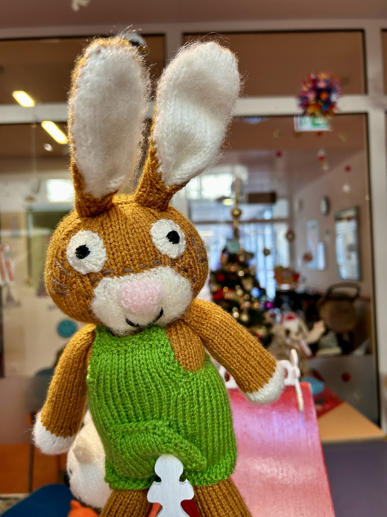 Für die Stricktiere verbrauchte Frau Behrmann mehrere Kilometer Garn – und das nicht ohne Grund. „Nicht alle Kinder kommen mit einem Andenken von zu Hause hierher. Aber wenn sie entlassen werden, haben sie vielleicht eines dabei.“