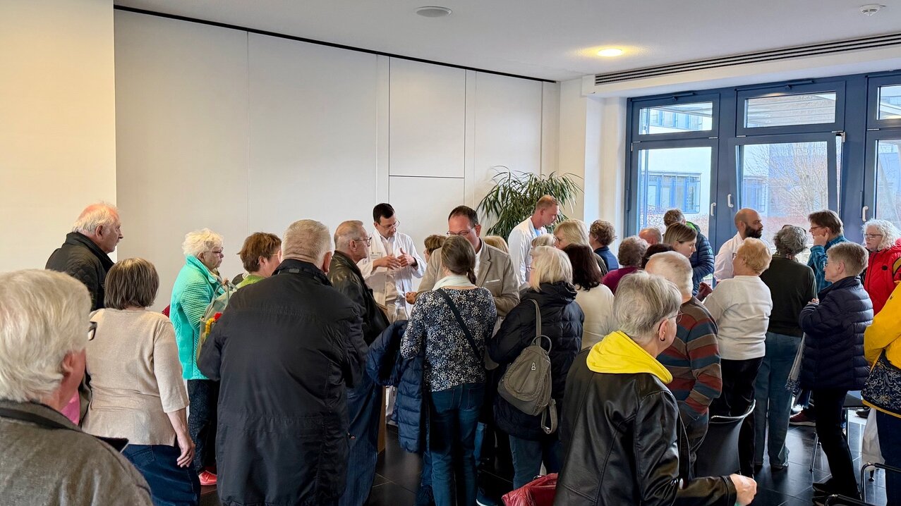 Nach den Vorträgen nutzten viele Besucher die Gelegenheit, direkt mit den vier anwesenden Handchirurgen ins Gespräch zu kommen. „Nutzen Sie die Chance – vier Handchirurgen auf einmal gibt es zwischen Halle, Leipzig, Potsdam und Magdeburg nicht so oft“, hatte Dr. Winter augenzwinkernd angekündigt. Tatsächlich bildeten sich schnell kleine Gruppen um die Ärzte. Die Menschen schilderten ihre persönlichen Beschwerden, stellten Fragen und holten sich Rat. Einige vereinbarten direkt Termine in der Fachambulanz – und das teilweise sogar kurzfristig. Obwohl der geplante Zeitrahmen längst überschritten war, nahmen sich die Ärzte weiterhin Zeit für jedes Gespräch.