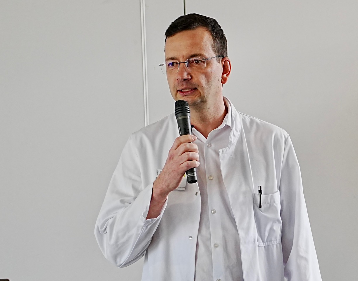 Nach der Begrüßung stellte Chefarzt Dr. med. Jochen Winter die Referenten und ihre Themen vor. Anschließend richtete er eine scheinbar einfache Frage an das Publikum: „Haben Sie heute schon Ihre Hände gespürt? Beim Händeschütteln, beim Schuhe zubinden oder beim Öffnen eines Schraubverschlusses? Wenn nicht – dann herzlichen Glückwunsch.“ Die Reaktionen im Saal – ein vielsagendes Nicken – ließen schnell erkennen, dass viele der Anwesenden ihre Hände heute durchaus gespürt hatten, allerdings eher schmerzhaft. Genau hier setzte der Nachmittag an: bei den alltäglichen Momenten, in denen die Hände eigentlich selbstverständlich funktionieren sollten – es aber nur noch unter Schmerzen oder gar nicht mehr tun.