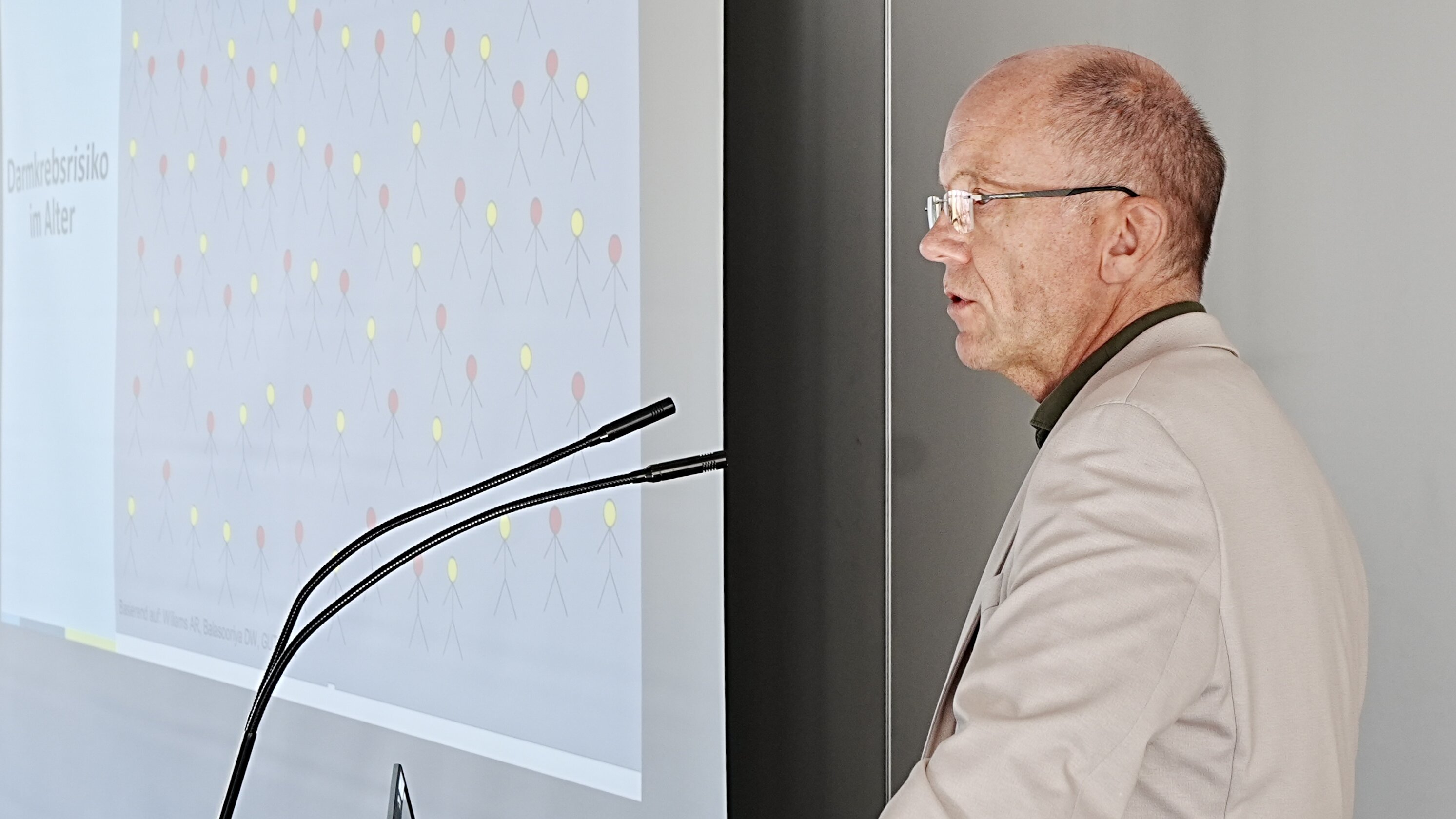 Im Mittelpunkt der Ausführungen stand die Darmspiegelung (Koloskopie) als Goldstandard der Früherkennung. Neben ihren diagnostischen und therapeutischen Möglichkeiten stellte er auch alternative Verfahren wie die Kapselendoskopie und Bluttests vor. Dabei betonte er, dass im Rahmen der Koloskopie nicht nur untersucht, sondern auch direkt eingegriffen werden kann: Gewebeproben (Biopsien) und die Entfernung von Polypen (Polypektomie) sind unmittelbar möglich. Sein Fazit: Regelmäßige Vorsorge kann Darmkrebs und seine Vorstufen häufig rechtzeitig erkennen.
