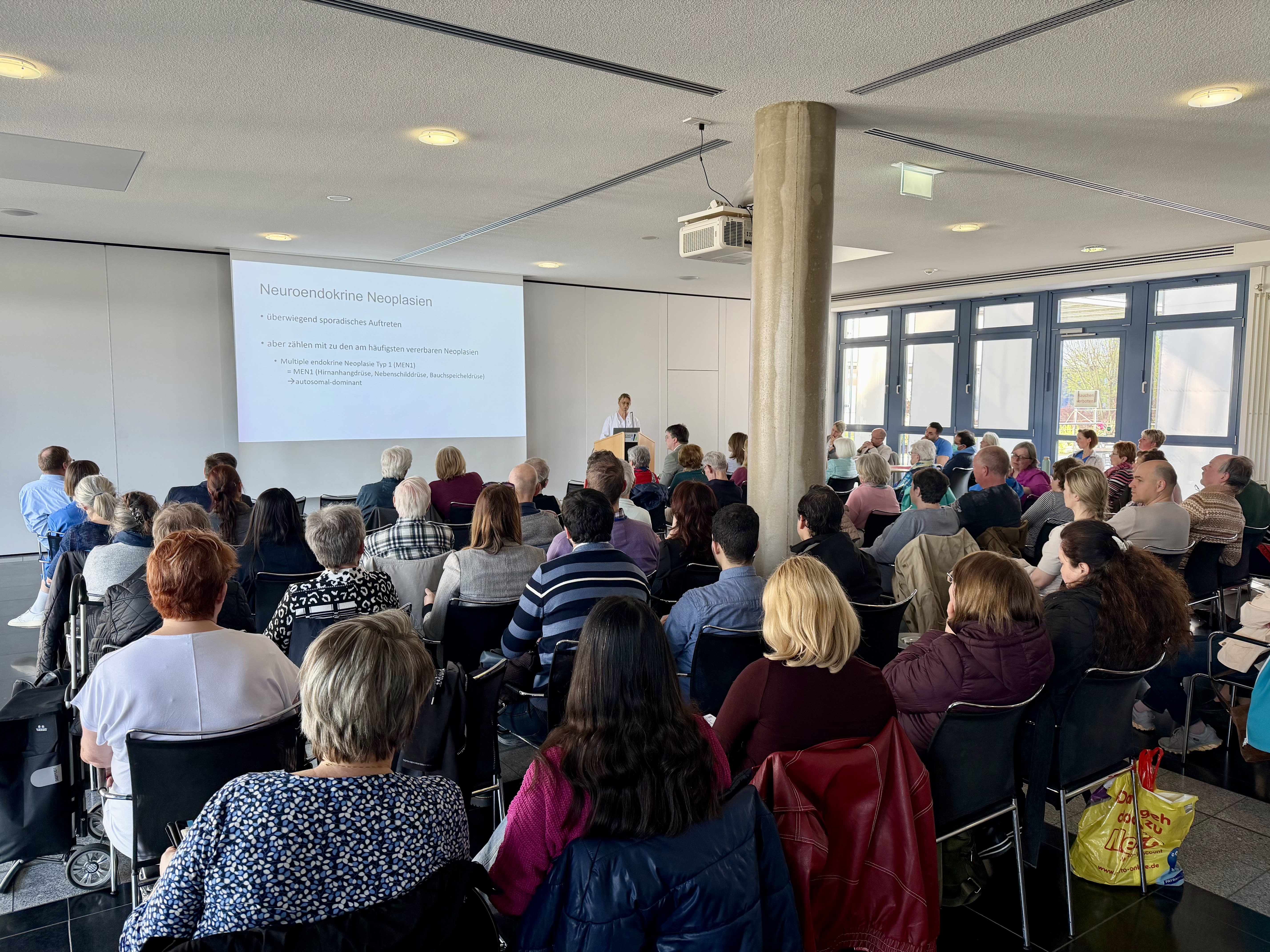 Im zweiten Vortrag widmete sich Dr. med. Ulrike Fischer, Oberärztin und Leiterin der Endokrinologie, der Diagnostik neuroendokriner Tumoren. Diese seltenen Tumoren stellen aufgrund ihrer oft unspezifischen oder fehlenden Symptome eine besondere Herausforderung dar. Dr. Fischer erläuterte, warum sie häufig erst spät entdeckt werden und welche Rolle moderne diagnostische Verfahren dabei spielen.