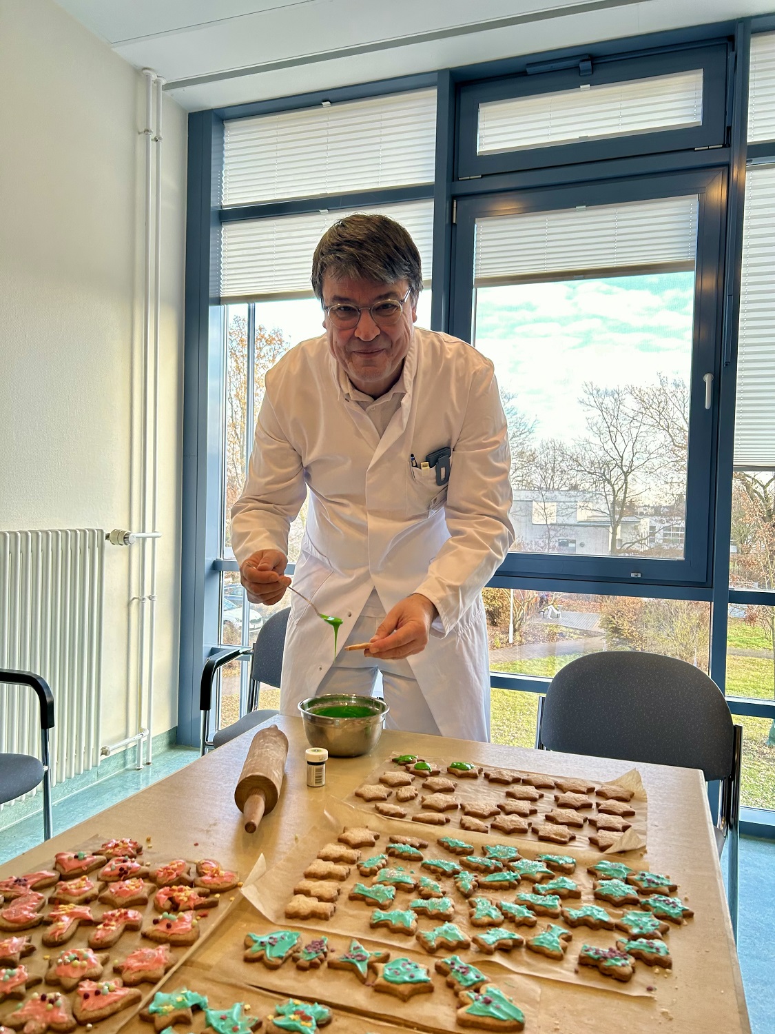 Als das interdisziplinäre Back-Team seine Kunstwerke schließlich fertiggestellt hatte, wurden die Plätzchen teilweise direkt vernascht oder sorgfältig in kleine Tütchen verpackt und an andere Patienten der Station verteilt. „Ich bin wirklich dankbar, dass Frau Pareigis das jedes Jahr organisiert. Sie hat meine größte Hochachtung“, so Prof. Behre.
