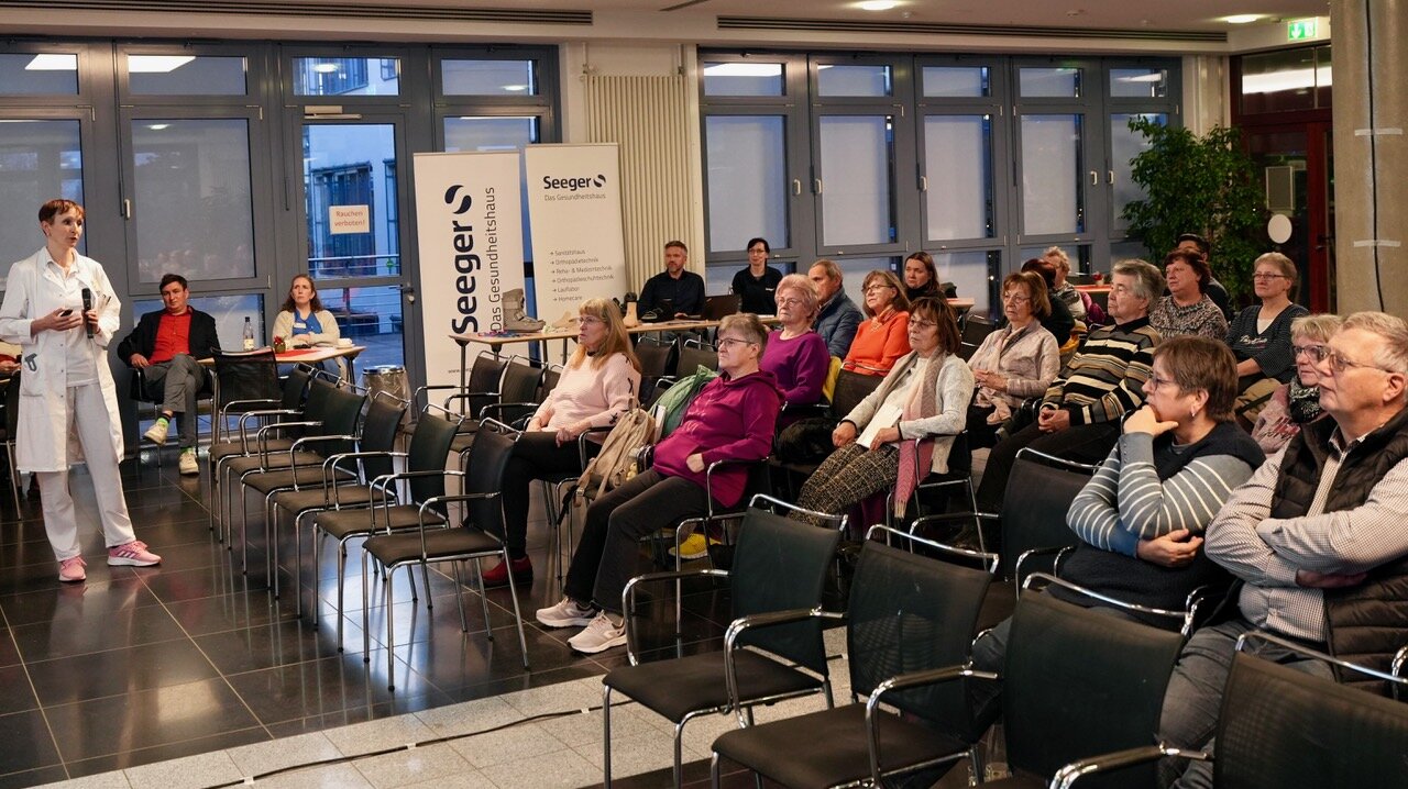 Den Auftakt machte Oberärztin Elisabeth Lux, Fachärztin für Orthopädie und Unfallchirurgie sowie kommissarische Leiterin der Fußchirurgie, mit ihrem Vortrag „Wenn der Vorfuß schmerzt – moderne Behandlung des Hallux valgus“. Anschaulich und gut verständlich führte sie zunächst in die Anatomie des Fußes ein und erklärte darauf aufbauend Ursachen, Pathomechanismen und typische Schmerzverläufe. Von der Anamnese über konservative Therapieansätze – die nicht immer zum gewünschten Erfolg führen – bis hin zu operativen Möglichkeiten spannte sie den Bogen. Dabei stellte sie sowohl gelenkerhaltende, korrigierende Verfahren wie Osteotomien als auch versteifende Operationen, etwa die Großzehengrundgelenksarthrodese, sowie postoperative Maßnahmen vor. Ein Vortrag, der Orientierung gab und Ängste nahm.