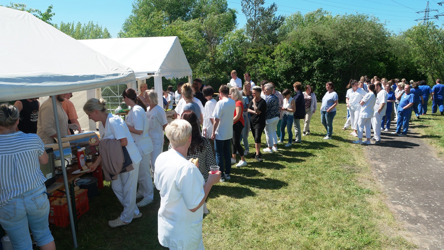 Bei Kaiserwetter lud die Pflegedienstleitung zum Internationalen Tag der Pflege alle Mitarbeiter, insbesondere die der Pflege, zum Grillfest in den Patientenpark ein.