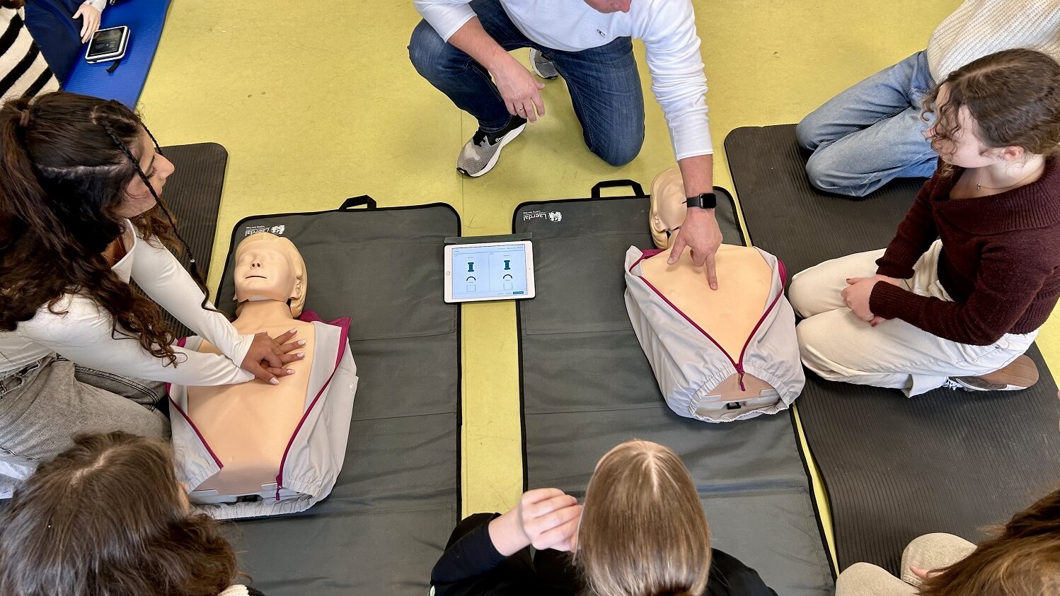 Dass eine Reanimation eher an eine sportliche Aktivität erinnert, zeigte sich schließlich ganz praktisch: Die Schülerinnen und Schüler kamen ordentlich ins Schwitzen, und bei manchen färbten sich die Wangen rot. Kein Wunder – eine korrekte Herzdruckmassage über mehrere Minuten durchzuhalten, bis der Rettungsdienst eintrifft, ist körperlich anstrengend. Doch genau diese Erfahrung machte den Jugendlichen deutlich, wie wichtig ihr beherztes Eingreifen sein kann.